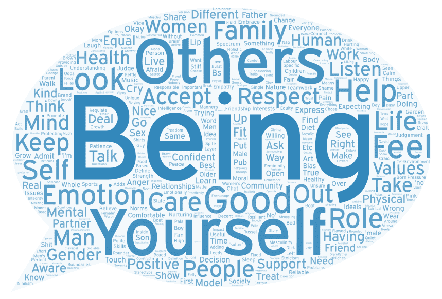 Masculinity can be a divisive topic and it often feels as though we’re being asked to pick sides, with the most aggressive voices on each side stereotyping and denigrating the other. It can be a damaging cultural environment for male identity, fuelling defensiveness, conflict, confusion and low self-esteem. In our experience most men don’t fit into a particular ‘side’ – their identities are nuanced, complex and tethered firmly to universal ideas about how we care about ourselves and others rather than anything you’d find in newspaper columns or social media.